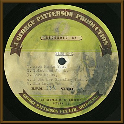 1964. (George Patterson Production) One of the truly rarest Beatles albums in the world is this Australian promotional 2 LP set made in advance of their 1964 Australian tour. Created at the behest of Cadbury's Chocolate Company, the 1st disc is one-sided with segments including interviews with Beatles' manager Brian Epstein, Keith Fordyce, Alan Freeman and a 10+ minute segment with the Beatles (Paul is absent). The Beatles joke, sing acapella versions of "On The Street Where You Live", "Tie Me Kangaroo Down Sport" and an original "Don't Shoot My Pet Dingo, Ringo"; and generally have a great time. The 2nd disc is an acetate with one side of Beatles' songs and the other side songs of other various artists of the era. An Australian expert estimates fewer than 50 of these were made and, as the label specifies that the recipient return the discs to the George Patterson ad agency "on completion of contract", very few made it to the collectors' market , probably fewer than 5. This is the only known copy with the 2nd acetate disc. Disc 1 VG-, Disc 2 VG-. |