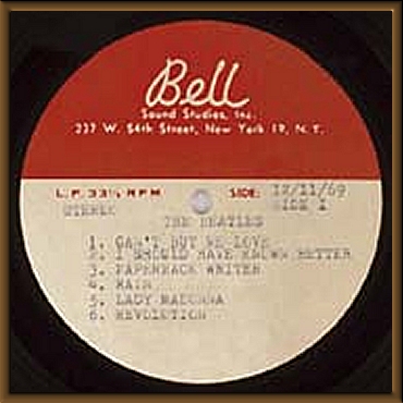 Lot Description The Beatles A double-sided twelve-inch acetate for the 1970 Capitol Records album Hey Jude, the Bell Sound Studios Inc. labels with typescript artist, track listing and date 12/11/69 Provenance The Estate Of Sam Feldman. |