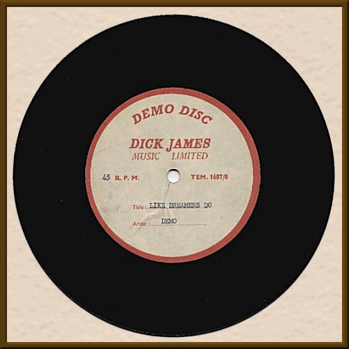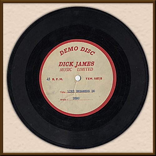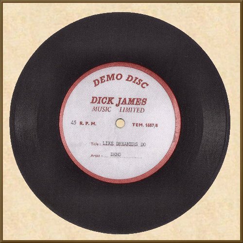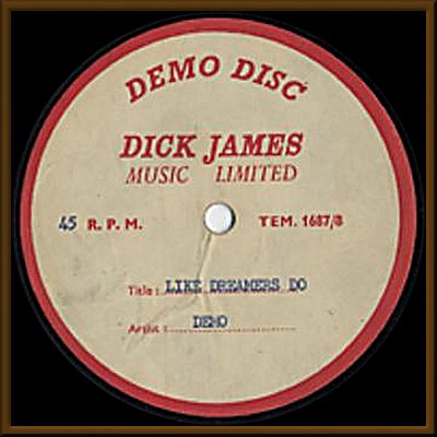 (Dick James Music Limited) one-sided 7" UK metal acetate Label VG++, Disc looks G, but plays VG. On January 1st, 1962, The Beatles (which then included drummer Pete Best) recorded 15 songs at Decca Studios in London. These included "Like Dreamers Do" and two other original Lennon/McCartney compositions. These recordings were made as a formal audition for the UK Decca Records label. However, The Beatles failed the audition and were rejected for a contract by the label. Towards the end of 1962, Brian Epstein had signed The Beatles to music publishing company, Dick James Music Limited, which led to the formation of Northern Songs. At that time, acetates of the original songs were cut for the purpose of soliciting Lennon/McCartney songs for other artists to possibly record. In fact, this song was a UK hit for The Applejacks in 1964. A truly amazing Beatles recorded artifact. For additional info on this recording see the Decca acetate here. |