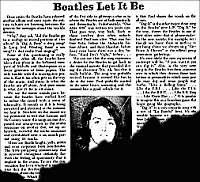 The acetate used for the "oldies" compilation image does, indeed, contain the performances and mixes referenced here but it's doubtful that this acetate is the source of the available recordings. The acetate image for compilation 1 is merely a generic image taken from what is alleged to be a Get Back acetate. _______________________________________ According to Beatle folklore, in the latter part of 1969, promotional copies of the Get Back album were distributed to radio stations (and other media outlets) in the United States. The September 20, 1969 issue of Rolling Stone magazine even featured a review of the album. In fact, no promotional copies of the album were released to anyone. See a well done 1986 bootleg fabrication - here. However, by September 1969, Glyn John's first two compilations somehow made their way to radio stations throughout the eastern United States. Shortly afterward, bootleg (unauthorized) record releases began to appear in U.S. record shops. The first Beatles bootleg, Kum Back, sourced from Glyn's first compilation, appeared in late 1969. ![]() RS 9/20/69 An infamous legend holds that John Lennon, himself, leaked an acetate or tape to the public during a trip to Canada on 13 September 1969 for his performance at the Toronto Rock & Roll Festival (Live Peace In Toronto). Allegedly, this was a trade for some unreleased Beatles recordings that he didn't have (John is known as a recordings collector). It's also known that John loathed the "Get Back Sessions" and the theory is that John wanted the world to know how "shitty" The Beatles had become. However, this theory has yet to see any valid verification. Another speculation is that Paul, who was the biggest supporter of the sessions, let the recordings out so that folks would know what The Beatles had done. Even George Martin and Glyn Johns have been targets for leak theories. But the likely source is someone from within the Apple (dis)organization. _______________________________________ COMPLETE MIXING SESSIONS AS DOCUMENTED BY JOHN BARRETT AND MARK LEWISOHN Because most of the mixing sessions were not done at E.M.I. Studios, definitive, detailed and accurate documentaion is not available. John Barrett's dates tend to be quite inaccurate and are likely based on the date an individual reel was returned to and logged at E.M.I. In turn, most of Lewisohn's original dates, as noted in Recording Sessions, are clearly based on Barrett's notes. In Chronicle, Lewisohn updates and, at the same time, generalizes his information (details noted below).