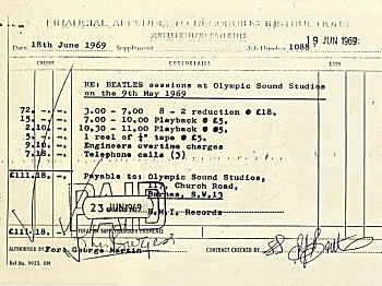 _______________________________________ ![]() A financial statement for the 9 May 1969 mixing session at Olympic Studios In summation, it seems as though the individual compilations were prepared on the following dates: Compilation 1 mixed and compiled 24, 25, 27 January 1969 - acetates cut 30 January 1969 First available 1969 This was never scheduled for release. Oldies compilation First available 1984 and 1987 mixed, compiled and acetates cut 30 January 1969 This was considered but never scheduled for release. It never went beyond this point. Compilation 2 First available 1969 mixed 3, 4, 7 April, 2 May 1969 - compiled and acetates cut 7, 9 May 1969 This was more of a prototype and probably never scheduled for release. Compilation 3 First available 1974 edited from compilation 2 on 15 May 1969 - complied and acetates cut 28 May 1969 This was scheduled for release in August, November, December 1969 and early 1970. Compilation 4 First available 1999 edited, mixed and compiled 15, 21 December 1969 and 5 January 1970 It appears as though this never actually had a scheduled release date. _______________________________________ A February 1970 article about Get Back from Circus magazine can be read here. ![]() _______________________________________ ![]() Of course, Get Back was handed to Phil Spector, reconfigured and released in 1970 as Let It Be. Initial copies released in England and Canada were a box set featuring a 160 page book. Click the image above to download a .pdf version of the book. _______________________________________ For details about several other Get Back associated acetates (including those illustrated above) see here and here _______________________________________ OFFICIALLY RELEASED MATERIAL FROM THE "GET BACK SESSIONS": "Get Back/Don't Let Me Down" single (mono & stereo) produced be George Martin and promo video released April 1969 "Let It Be" single produced by George Martin released March 1970 Let It Be album produced by Phil Spector released May 1970 Let It Be movie directed by Michael Lindsey-Hogg released May 1970 Imagine: John Lennon docmentary movie releases 1988 Anthology 3 album produced by George Martin released 1996 Anthology documentary released 1996 Let It Be... Naked album produced by Paul Hicks, Guy Massey and Allan Rouse released 2003 Promos and EPKs various unique mixes and film clips throughout various years 1995-current Let It Be movie remastered reported for release in late 2005 _______________________________________ This section of TheBeatleSource was designed as a companion piece to the Get Back chapter in the third volume of author John C. Winn's excellent series, The Beatles' Recorded Legacy. For the defintive analysis of the various Get Back compilations and how they came into circulation, see... LIFTING LATCHES: INSIDE THE BEATLES VAULTS ![]() Click the pic to order now! |