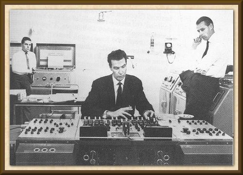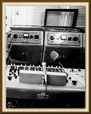 ![]() In the control room at Studio 2. Several reels sit on the shelves to the right. |