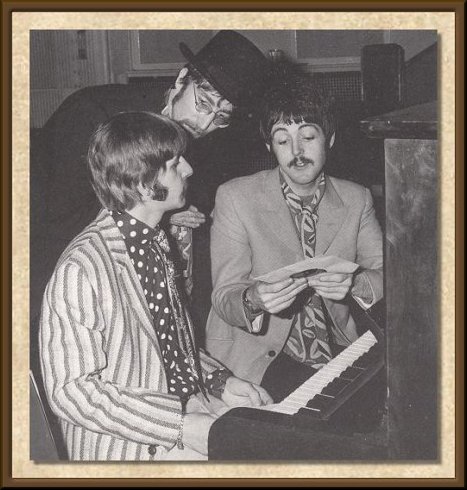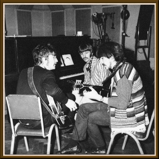 ![]() John listens to a playback during the Sgt. Pepper sessions. |