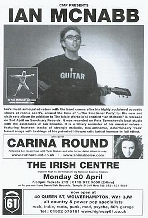 11 May 2001 Birmingham, Irish Centre Supporting Ian McNabb |