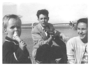 Paul with his cousin, Bett and her son Ted. One source seems to indicate that this photo was taken in late August-early September 1957 at Butlins Holiday Camp in Filey, Yorkshire. See an alternate copy - here |