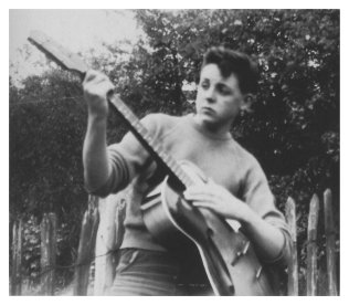General individual photos This is just a few general early photos of The Beatles. The criteria here is that they are holding musical instruments. Very few of these type of photos have been made available to the public and, strangely, there seem to be no early photos of John with a musical instrument. I will swear that I've seen an early photo of Ringo with a drum but I was unable to locate it for this project. |