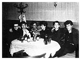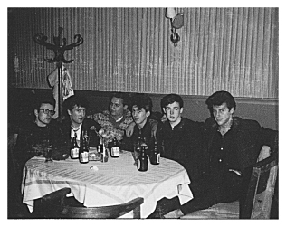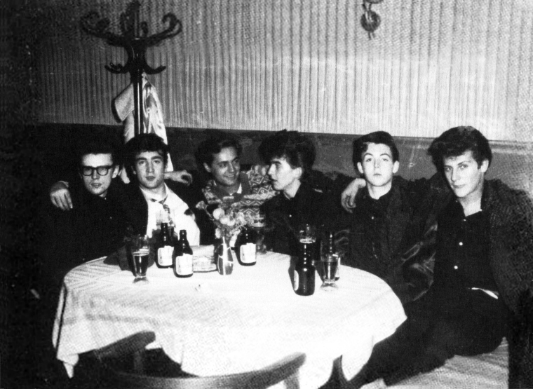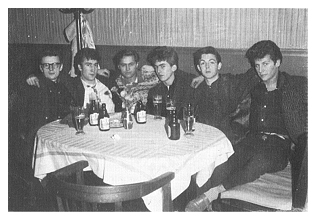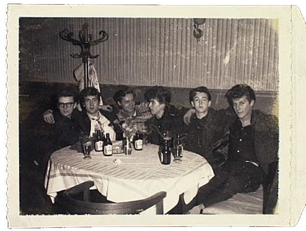 Harold's Cafe Grosse Freiheit Hamburg, Germany Photographer: unknown I can't determine exactly where Harold's is. One source says across the street from The Kaiserkeller another source says across from The Indra. In any case, it seems to be within about a block of the future Star Club, on the same side of the street. One source implies this might be 28 October 1960. Their friend is Helmut (last name?), a waiter they befriended while in Hamburg. PAUL: "Harald's was on the Große Freiheit. They would serve hamburgers called Frikadellen. We could never understand why they didn't call them 'hamburgers' in Hamburg." TONY SHERIDAN: "Another place we went to a lot was a typical German "Imbiss" on the Grosse Freiheit called Harold's. The Beatles always ate corn flakes with milk (at one time that seemed to be their staple diet!) - and we all had tea!" |