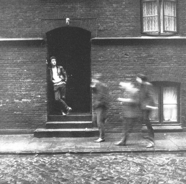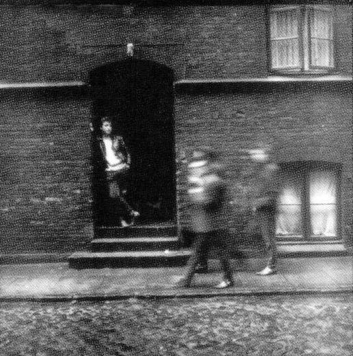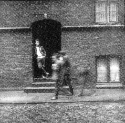Jäger-Passage Wohlwillstraße 22 Hamburg, Germany Photographer: Jurgen Vollmer In a 1997 interview, Jurgen Vollmer implies that these photos were taken in the afternoon after the session seen on this page. He further indicates that twelve photos were taken. All twelve photos are represented on here. The three figures walking by are Paul, George and Stu. Pete chose to not come along. The sequence of the photos has been determined by an available image of a contact sheet of the set. The contact sheet is arranged in four sets of three sequenced photos. It's not clear if the four sets are in sequence. Thus, every three photos seen here is a sequence. |