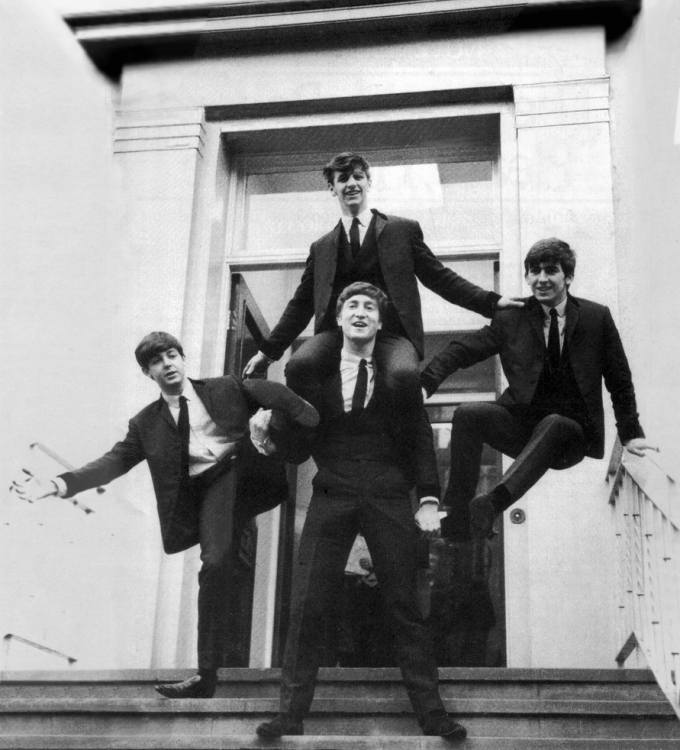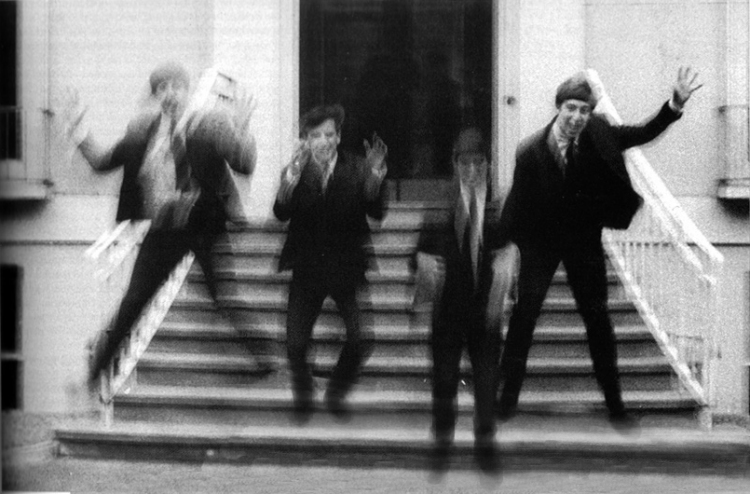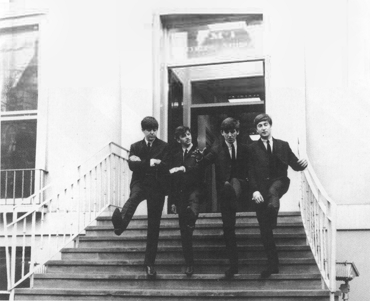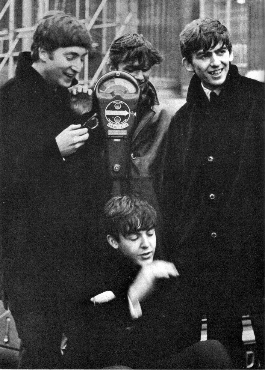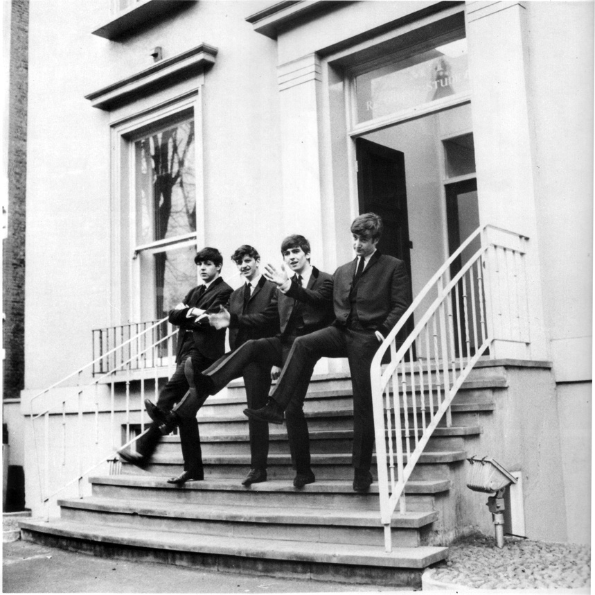 E.M.I. House Manchester Square On the street Montague Place E.M.I. Studios Abbey Road NW8 London Photographer: John Dove (The photographer seen in some of the photos is not Dove and is unidentified) On this day, The Beatles were in London to record their next single. Before the afternoon and evening sessions at E.M.I. Studios, they gathered at E.M.I. House with Brian, George Martin and music publisher Dick James in order to have photos take by E.M.I. staff photographer, John Dove for potential use as the cover of their upcoming LP. Having driven to London overnight, they changed into suits. Photos were first taken on the stairwell outside E.M.I. House and around a parking meter in Montague Place. Then, they headed to E.M.I. Studios and had photos taken on the front steps of the Abbey Road studios. |