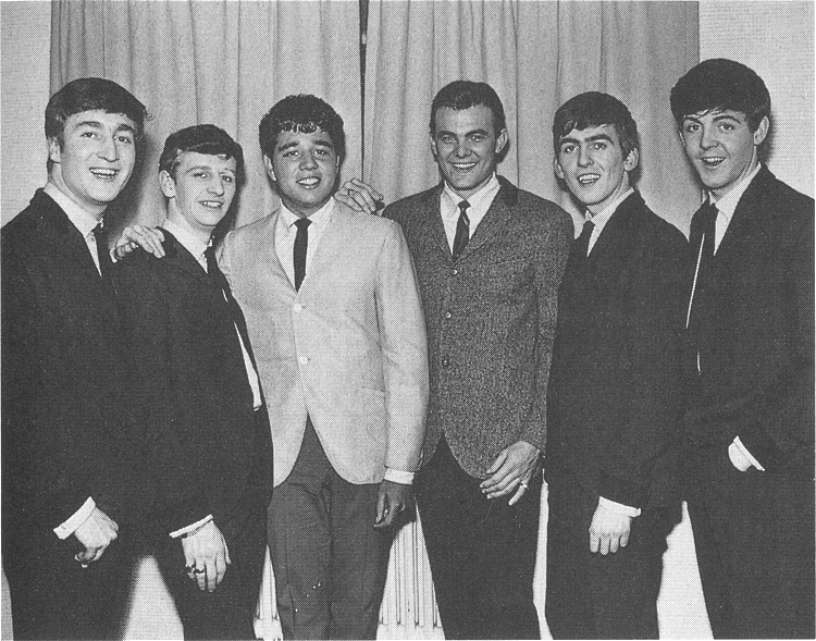 Liverpool Empire London Photographer: Dezo Hoffman (live shots) Photographer: Harry Hammond (posed row shots) Photographer: unknown (the rest) I don't have definitive info for this set of photos. From 9 - 31 March 1963, The Beatles toured as support act for Tommy Roe and Chris Montez. My reference source says the live shot are this date and venue. I'm inclined to believe that. The two 'posed' photos could actually be anytime during the tour. The last two photo are noted as being in Liverpool on the Tommy Roe website. This would seem to put them on this date if not this venue. |